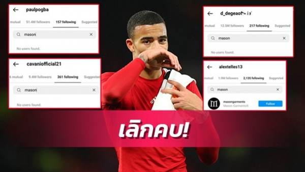 ดาบิด เด เคอา, ปอล ป็อกบา, เอดินสัน คาวานี่ และ อเล็กซ์ เตลลิส คือ 4 นักเตะ แมนเชสเตอร์ ยูไนเต็ด กลุ่มแรกๆ ที่กด "อันฟอลโล่ว์" บนโซเชียลมีเดียของ เมสัน กรีนวู้ด ในช่วงไม่นานหลังจากที่แฟนสาวของ กรีนวู้ด กล่าวหาดาวเตะชาวอังกฤษว่าทำร้ายร่างกายและบังคับให้เธอยอมมีเพศสัมพันธ์ร่วมกัน