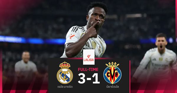 วินิซิอุส จูเนียร์ เหมาสองประตู ก่อน คีลิยัน เอ็มบัปเป้ ยิงปิดท้ายช่วย เรอัล มาดริด เปิดบ้านชนะ บียาร์เรอัล 3-1 นำจ่าฝูง ลา ลีกา เก็บ 21 แต้ม ทิ้ง บาร์เซโลน่า 2 คะแนน