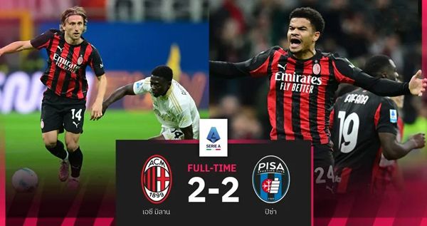 ผลบอล เอซี มิลาน 2-2 ปิซ่า| เกือบคาบ้าน! ปีศาจแดงดำไล่เจ๊าทดเจ็บยังนำจ่าฝูง