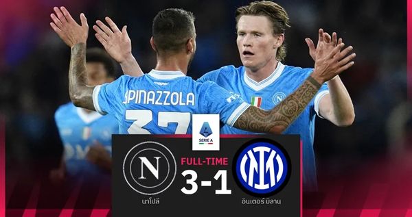 นาโปลี แชมป์เก่ากัลโช่ เซเรีย อา เปิดบ้านทุบ อินเตอร์ มิลาน 3-1 เกมนี้ เควิน เดอ บรอยน์ ยิงจุดโทษขึ้นนำก่อนเจ็บถูกเปลี่ยนตัวออก ขณะที่ สก็อตต์ แม็คโทมิเนย์ ซัดปิดท้ายสุดเฉียบ ส่ง “อัซซูร่า” เก็บเพิ่มเป็น 18 แต้ม ยึดจ่าฝูงชั่วคราวในค่ำคืนวันอาทิตย์