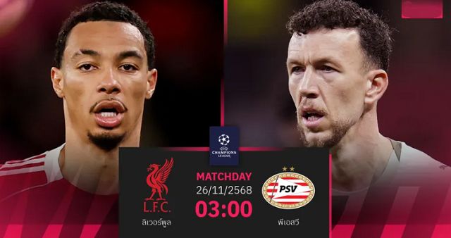 ลิเวอร์พูลเปิดบ้านพบ พีเอสวี ไอนด์โฮเฟ่น ในศึกยูฟ่า แชมเปียนส์ลีก 26 พ.ย. 68 แม้เคยชนะทุกครั้งที่เจอกันในถิ่น แอนฟิลด์ แต่ฟอร์มล่าสุดของ หงส์แดง ทำให้ทีมเยือนมีหวังคว้าผลการแข่งขันดี