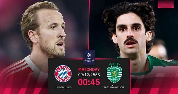 วิเคราะห์บอล บาเยิร์น vs สปอร์ติ้ง 9 ธ.ค. 68 : เสือใต้ฟอร์มดุกู้ชื่อลุย UCL