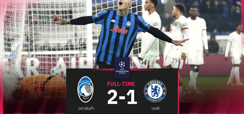 ผลบอล อตาลันต้า 2-1 เชลซี: สิงห์นำก่อนแต่ต้านไม่ไหวพ่ายเจ้าบ้าน UCL