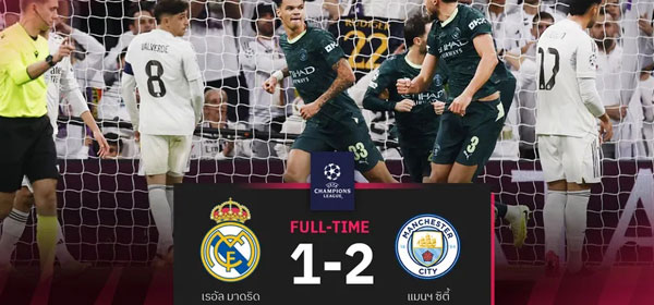 ผลบอล เรอัล มาดริด 1-2 แมนซิตี้: อลอนโซ่ เครียดราชันโดนเรือใบสอยคาบ้านศึก UCL