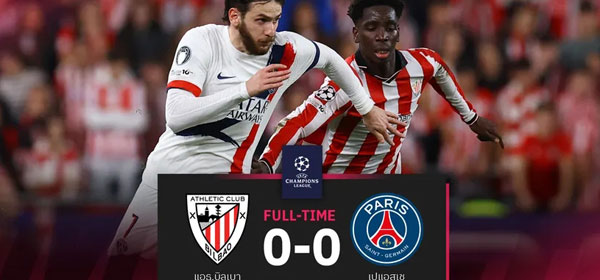 ผลบอล แอธ.บิลเบา 0-0 เปแอสเช : แชมป์เก่ากระสุนด้าน! โอกาสยิงเยอะแต่เจ๊าจืดศึก UCL