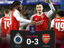 ผลบอล คลับ บรูช 0-3 อาร์เซน่อล : มาดูเอเก้ กดสองตุง! ปืนเฉียบบุกขยี้ทีมดังเบลเยียมถ้วย UCL