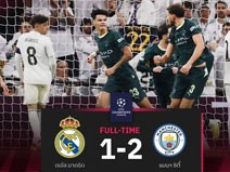 ผลบอล เรอัล มาดริด 1-2 แมนซิตี้: อลอนโซ่ เครียดราชันโดนเรือใบสอยคาบ้านศึก UCL