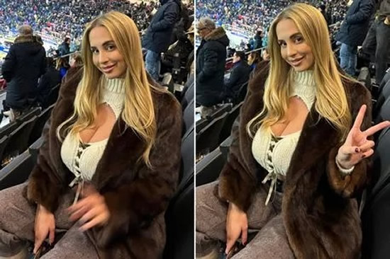 พิธีกรทีวี มาเรีย อาร์เรกินี ดึงดูดความสนใจด้วยชุดเด่นท่ามกลางอากาศหนาวในแมตช์มิลาน