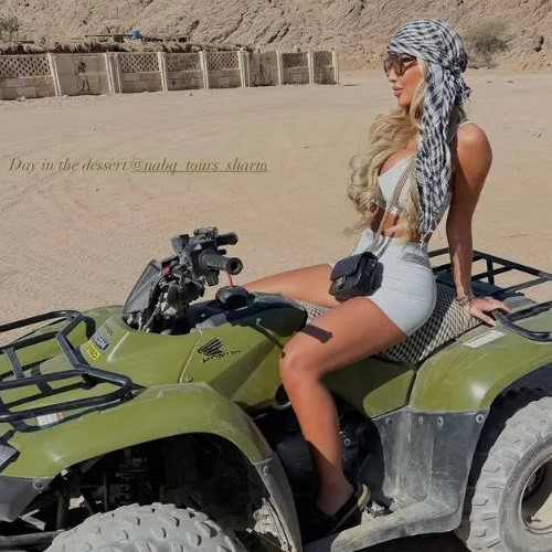 โอลิเวีย โฮลเดอร์ แฟนสาวของโคล พาลเมอร์ ดึงดูดความสนใจจากแฟนๆ ขณะกำลังพักร้อนในประเทศอียิปต์ เธอโชว์สัดส่วนในชุดเสื้อและกางเกงสีเทาเซตเดียวกัน พร้อมโพสท่าถ่ายรูปกับฉากหลังทะเลทรายที่สวยงาม